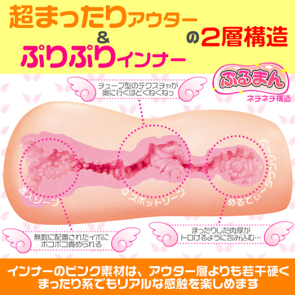 トロけるような極上の快感が楽しめるオナホールふわっとトロける天使のぷるまん!超まったりアウターとプリプリのインナーがもたらす、トロける柔らかさとリアルな刺激の奇跡の融合!!可愛いタテスジの挿入部を広げるとピンク色のアソコが解禁される、思わず挿入したくなるオマ○コ。生態的に複雑にうごめく非貫通のリアル膣内がぷりぷり、ぐちょぐちょ絡み付きます♪日本製で、食品衛生法基準370号準拠素材を使用しているので安心してお使いいただけます。本体サイズ:17.0×Φ9.0cmパッケージサイズ:13.7×23.2×8.3cm重量:580g