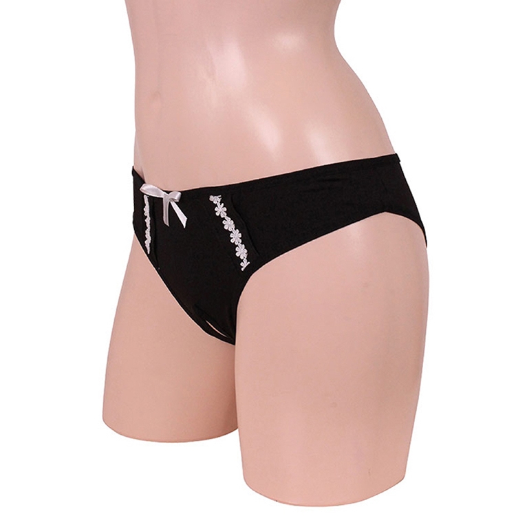 ブラック生地とフロントデザインが可愛いこちらのショーツはフルバック仕様でピュアさ溢れるデザインですが、クロッチ部分を大胆にもオープン仕様にすることでエロさアップなショーツに早変わり♪ちょっぴりセクシーさも出したい時におすすめのショーツになっています。サイズ:Mサイズ H87-95cm