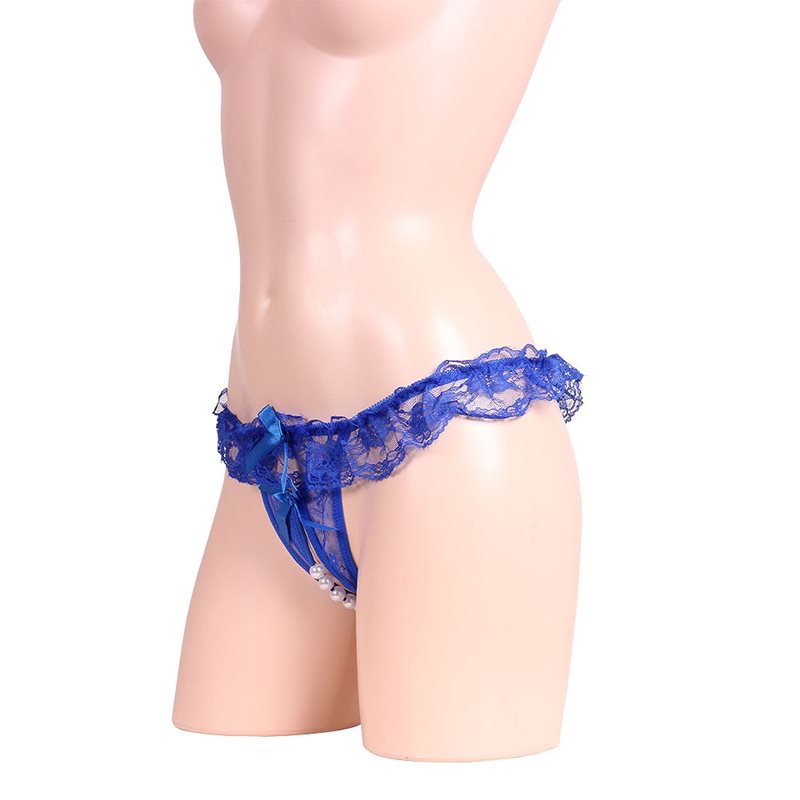 5個の大粒パールを身につけた瞬間から背徳的な時間の始まり。ウエストにはシアーなレースを贅沢にあしらいフロントのリボンで気分を盛り上げる憧れのロイヤルブルー。Mサイズ:B78-88、W58-70、H87-95