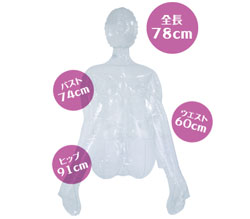 サイズ:全長78.0cm、バスト74.0cm、ウエスト60.0cm、ヒップ91.0cm パッケージサイズ:15.5×21.0×7.5cm