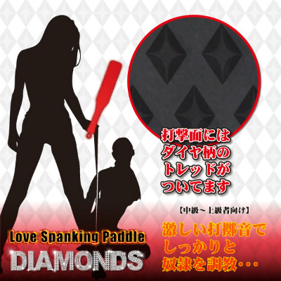 赤と黒のスタイリッシュでかっこいいスパンキングパドル「ラブスパンキングパドル ダイヤモンド」。かっこいい秘密としては、黒の表面にダイヤモンドのデザインが施されていて、細かいデザインにはなりますが、この細かさが人気の秘密となっています。素材は上質なシリコン素材を採用し、痛みを和らげる上に激しい打撃音を出してくれるというメリットがあります。このスパンキングアイテムでアナタの奴隷をしっかりと調教してください。本体サイズ:37.5×6.1×0.7cmパッケージサイズ:52.0×7.8×0.8cm