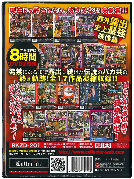 露出バカ一代 ALLBEST/あの伝説の過激野外露出『露出バカ一代』の全集がついに発売!!シリーズ全17作品を2枚組8時間に特別編集収録!!完全保存版です。現在じゃ制作絶対不可能の露出史上最強の過激度!!時代とともに散って行った、愛すべきバカどもの熱き軌跡を観た方もまだ観ていない方も、お楽しみ下さい。ある意味もの凄く怖い作品です。480min