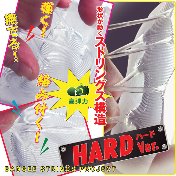 世界初!内部形状が動くムービング構造を採用した新感覚オナホール「バンジーシェイク」のハードVerが登場しました。内部は、横ヒダが膣道全体に張り巡らされたミミズ千匹仕様で、ねっとりとした素材と相まって、最高の絡みつきを表現しています。さらに、ムービング構造の元となるストリングスが内部に3箇所採用されていて、このストリングスに男性器が絡まることで最高の快感を生み出してくれます。ハードタイプの素材を採用することで、より弾き、より絡まる快感をお楽しみいただけます。内部のストリングをハサミで切る事で異なる快感を生み出せるのもこのホールの特徴です。クセになるこの快感をたっぷりとお楽しみください。