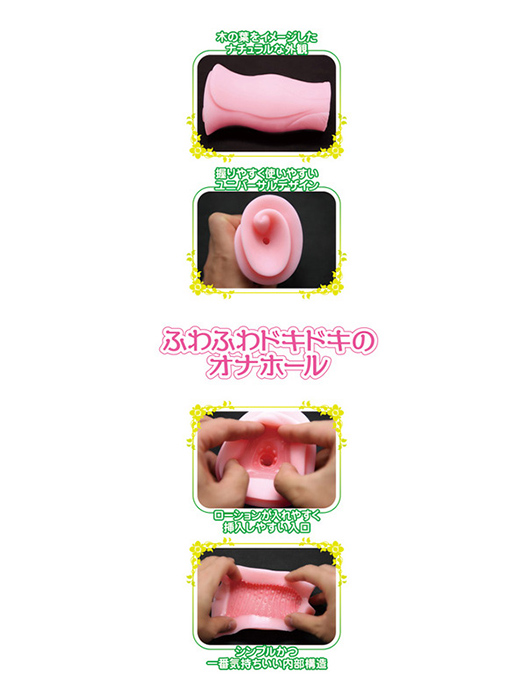 ふわふわドキドキ!ゆっくり快感が持続する! こころピョンピョン踊りだす癒しの非貫通型ホール「ご注文はうさ耳娘ですか?」プニプニの柔らかさが気持ちいい2重構造のホール!210gの重量感!木の葉をイメージしたナチュラルな外観。握りやすく使いやすいユニバーサルデザイン。入り口はローションが入れやすく、挿入しやすいです。シンプルかつ一番気持ちいい内部構造は、螺旋状に続く溝とドットの連続が敏感部分を刺激する!癒し系うさ耳娘と思い存分戯れちゃいましょう!!