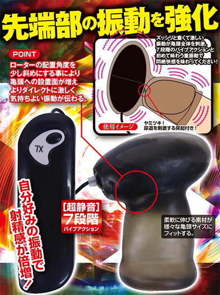 亀頭を丸呑みして刺激する最恐亀頭責めグッズ! 「亀頭への刺激ならブラックロック」という代名詞まで付いてしまいそうな勢いのブラックロックシリーズに、シリーズ第4弾となる「ブラックロックXXX (トリプルエックス)」が登場しました。従来のブラックロックよりもさらに亀頭への密着性を高めたキャップになっていて、手を使わずとも射精へと導いてくれるかのような刺激的な仕上がりになっています。キャップの内側には、突起が採用されていて、尿道付近をピンポイントで刺激!さらに、ずっしりと重い振動が亀頭全体に広がるから、従来のブラックロックで慢性化した上級者の方でも悶絶必至間違いなし!ローターを少し斜めに配置することで設置面が増え、よりダイレクトな振動が伝わるのも特徴です。また、ローターはキャップと取り外しが可能となっているので、ローター単体としても使えるのが嬉しいポイント。ワンタッチで操作可能な7パターンの振動モードを搭載した多機能ローターだから、マルチにお使いいただけます。今までの亀頭責めでは満足できなかったアナタに贈る、絶対オススメの亀頭責めアイテムです。