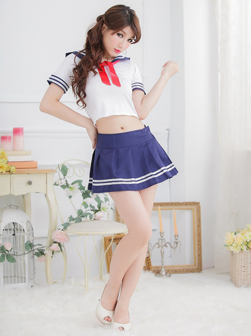 美しいボディラインを表現する制服コスプレボディラインに自信のある方必見♪超ミニ丈トップスがエロすぎるミニミニセーラー服コスチューム!赤のリボンタイが可愛いシンプルなセーラーデザインだからこそオススメの、このコスチュームはウエストをチラ見せできる超ミニ仕様!もちろんスカートもミニなので美脚効果もバツグン◎スカートの裾部分に入った白ラインも可愛いですね☆ガーターベルトや網タイツと合わせても相性ばっちりのおすすめセットになっています!サイズ:フリーサイズセット内容:ブラウス、スカート、リボン