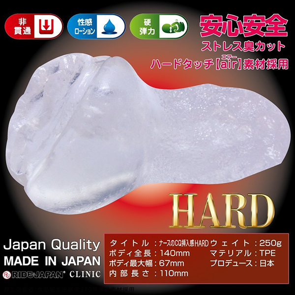これぞ、子宮に突っ込む快感! 子宮に挿入するという素晴らしい快感をお楽しみいただけるオナホール「ナースのCQ挿入感」のハードタイプが登場しました。内部構造、外観等はそのままに、ハードタイプによる締め付け感を味わっていただけます。子宮口に差しかかると跳ね返るような弾力とキツキツっぷりがたまりません!ピストン時に子宮を出入りするカリ部分が刺激され、あっという間に昇天してしまう勢いです。非貫通タイプによるバキューム力も楽しめる、子宮内を体感できる一本。ハードな刺激と共に、複雑な内部構造をたっぷりとお楽しみください。