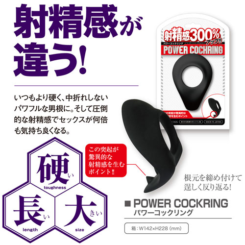 締め付けと前立腺刺激を同時に行うサポートグッズペニス自体を増大させることで、今まで味わったことのない未知なる射精感が味わえる男性用リング「パワーコック」。装着方法は簡単で、根元に押さえつけるように装着するだけでOK。すると、本体底部の突起が外側から前立腺を刺激することで、射精時にいつもより元気に、より多くの量を放出できることでしょう。いつもより硬く、中折れしないパワフルな男根に。そして圧倒的な射精感でセックスが何倍も気持ち良くなる。本体サイズ:11.5×7.8cm重量:56g