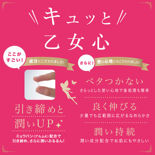 引き締め効果で女子力UP!引き締め効果と潤いを両立させた女性のための快感ジェル「フェアリーのしずく」。ベタつきを抑えてさらっとした使い心地なので、後処理も簡単に行えます。少量でも広範囲に広がるなめらかさで、潤い成分を配合しているから、潤い時間も持続します。また、ミョウバン配合で引き締め効果も期待できます。女性のために作られた、女性のためのローションです。内容量:120ml