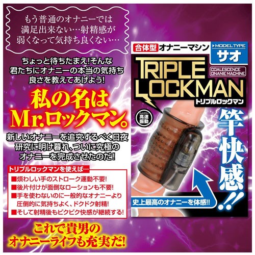 オナニーノアタラシイカタチ! 右手でサオをシコシコする時代はもう終わった!?新しいオナニーのカタチを確立する、次世代型オナニーアイテム「トリプルロックマン」。こちらの「サオ」は、その名の通り、サオ部分にサックのように装着するだけでOK。あとは、付属のローターを外側から装着し、スイッチON!小刻みな振動がサオ全体へと伝わり、今までにない刺激と興奮と快感を生み出してくれます。ローターはダイヤル式の無段階式調節ローターを付属。ヘッドの小さいローターだから、ローター単体を快感アイテムとしてお使いいただくことも可能です。同シリーズから、「タマ」「キトウ」も登場しており、3つを同時に購入して装着することで、更なる快感へと導いてくれます。射精時には、今まで実感したことのない射精感を味わっていただけること間違いなし。ずっとお世話になってきた右手を卒業し、今こそ新たなオナニーを体感するチャンスです。