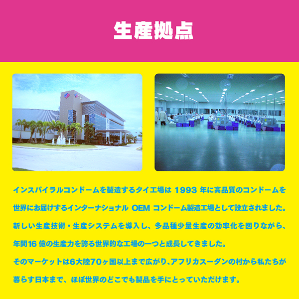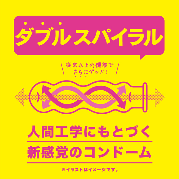先端スパイラル構造のコンドーム人間工学にもとづく新感覚のコンドーム「SPIRAL インスパイラルW 6個入り」。人気の「SPIRAL 6個入り」を改良させて、亀頭部分にダブルスパイラルという構造を搭載しました。新しい形状でただ被せるだけというコンドームの概念を覆す、被せる+快感が得られるコンドームです。コンドームの厚みは0.05ミリ。最近の極薄コンドームと比べると大幅に厚みを感じるかもしれませんが、特徴ある構造はこのSPIRALシリーズだけ。是非、パートナーと違いを体感してください。内容量:6個入り
