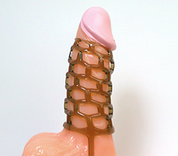 亀頭を出す?出さない?お好みで使える男性用サック 網目状になった本体が竿全体を締め付けて持続力をアップさせてくれる男性用サック「アメイジングサック ロビン」。亀頭を覆ってお使いいただくスタンダードな使い方以外に、このサックの特徴として、先端の小さな穴から亀頭を露出させることも可能。亀頭を露出させることで適度な刺激を与え、さらにカリの部分で締め付けてくれるから、亀頭増大にも効果を発揮してくれます。また、タマをロックする形で装着するので、タマの締め付けと装着のズレを極限まで抑え、安定した使用感を得ることができます。男性にも女性にもうれしい形状が魅力のサックです。