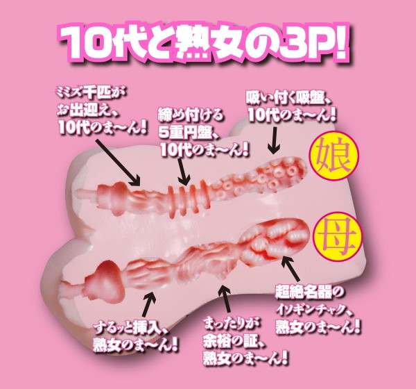 10代娘と熟女母の異なる快感を楽しめますっ!人気漫画家「水龍敬」が手掛ける架空の性的テーマパークをイメージして完成したオナホール「水龍敬ランドコレクション 【No.2 母娘】」。今回のホールは、母と娘の親子丼が楽しめるデザインとなっていて、男の欲望を駆りたててくれます。母の穴も娘の穴もしっかりと造り込まれた内部構造となっていて、妥協のない構造が貴方を快感へと導いてくれます。母の穴は、するっと受け入れてくれる挿入口があり、まったりと余裕すら感じさせる熟女のヒダを感じることができます。最深部には、超絶名器のイソギンチャクを採用。イソギンチャクのようにしっかりと亀頭に絡みつき、最高の快感を与えてくれます。娘の穴は10代のキツさがしっかりと体感でき、挿入直後にミミズ千匹でお出迎え。中央付近には5重円盤で締めつける大ヒダが絡みつき、最深部は吸い付くタコツボ形状となっています。それぞれの穴がしっかりと役割を果たしてくれているので、どちらの穴に挿れても満足していただけること間違いなし。アナタの為だけの親子丼をたっぷりとご堪能ください。重量:450gパッケージサイズ:14.0×20.0×10.0cm