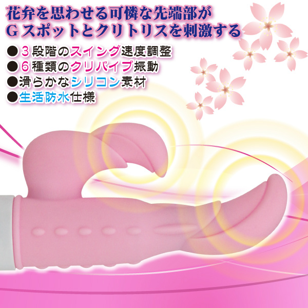 生活防水とシリコン素材の有能キュートバイブ 可愛い見た目と裏腹な挿入感を追求した大人の女性の為のバイブ「桃艶あそこバイブ」登場しました。3段階のスイング速度調整機能が内部、6種類のクリバイブ振動機能が外部と多彩なバイブ責めが特徴です。花弁を思わせる先端部は滑らかなシリコン素材で、心地よくGスポットとクリトリスを刺激します。本体は20センチと、一般的な日本人の男性のサイズよりも長めに設計されているのが素敵ですね。滑らかな質感、多彩な振動、挿入感を追求した大人の女性の為のバイブです。