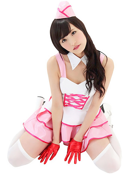 超ミニ☆アイドル風コスチューム珍しいエナメル生地のアイドル風コスチューム♪ホワイトとピンクという女の子らしいカラーで作られており、パイピングは濃いめのピンクでくっきりと衣装を際立ててくれます☆胸元下部分は編み上げ仕様で、フリルスカートとの相性抜群◎セットの付け襟と帽子をつければ今すぐアイドルになれちゃうお得なコスチュームになっています。サイズ:Mサイズ (B78-88、W58-70、H87-95) セット内容:ワンピース、帽子、ピン2本、付け襟