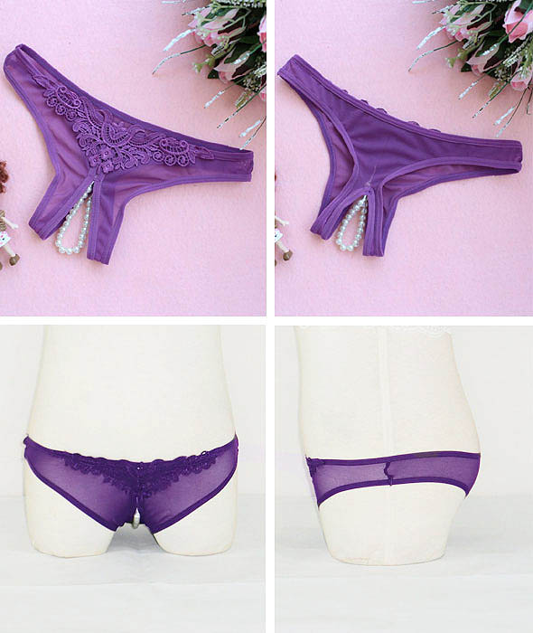 シースルーオープンクロッチ・パールビジュー付・ショーツ パープル