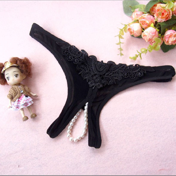 シースルーオープンクロッチ・パールビジュー付・ショーツ ブラック 460円(税込506円)
