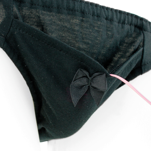 ローターを入れるポケットが付いているローライズショーツ♪人気のローターポケット付きショーツにお洒落なデザインが登場!小悪魔ブラックカラーのショーツポケットのフロント部分にリボンチャームが施されており、派手すぎないデザインが清楚さUP♪ローライズショーツになっているので、ショーツが見える心配もなし☆外で遊べる自分責め用に購入しても使いやすく、アダルティーに見えない女の子らしいデザインがおすすめです◎サイズ:Mサイズ H87-95cm素材 :綿100%