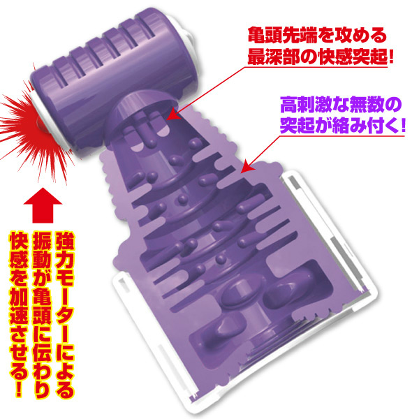 新感覚!亀頭特化型電動オナホール♪ 亀頭にかぶせて徹底的に先端のみを刺激する、まったく新しいカタチのオナホール「カリシェイカー」。本体底部から挿入し、この挿入部分がソフトシリコン素材で覆われているので、挿入直後は優しく受け入れてくれます。しっかりと奥まで挿入した段階で、本体上部にあるロータースイッチを・・・最強の亀頭責めオナホールに大変身!この特殊形状により、男性器の先端にしっかりと振動が伝わり、亀頭やサオ、尿道を徹底的に攻め立ててくれます。振動パターンは12パターンを搭載しているので、飽きのこない使用感を得ることができます。亀頭を締め付けながら高刺激の無数の突起が絡みつく、斬新形状の亀頭責めアイテムです。