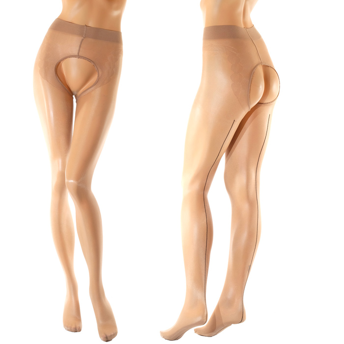 ポーランドのストッキングブランド【MISS_O/ミス・オー】のシンプルで繊細な光沢系ストッキングです!20デニールという薄手タイプで、光沢感のある上質な素材のパンティストッキングです。履き口がシリコングリップ付きのレーストップデザインになっていて上品なアクセントになっています。股部分はオープンクロッチ(股開き)タイプになっています。フラットシームタイプで、太もも部分での切り替えはありません。ショート丈のボトムやミニスカートと共合わせやすいアイテムです。※ヒール・ショーツ等は付きません。カラー:ベージュサイズ:S/Mサイズ素材:POLIAMID80%、ELASTAN20%