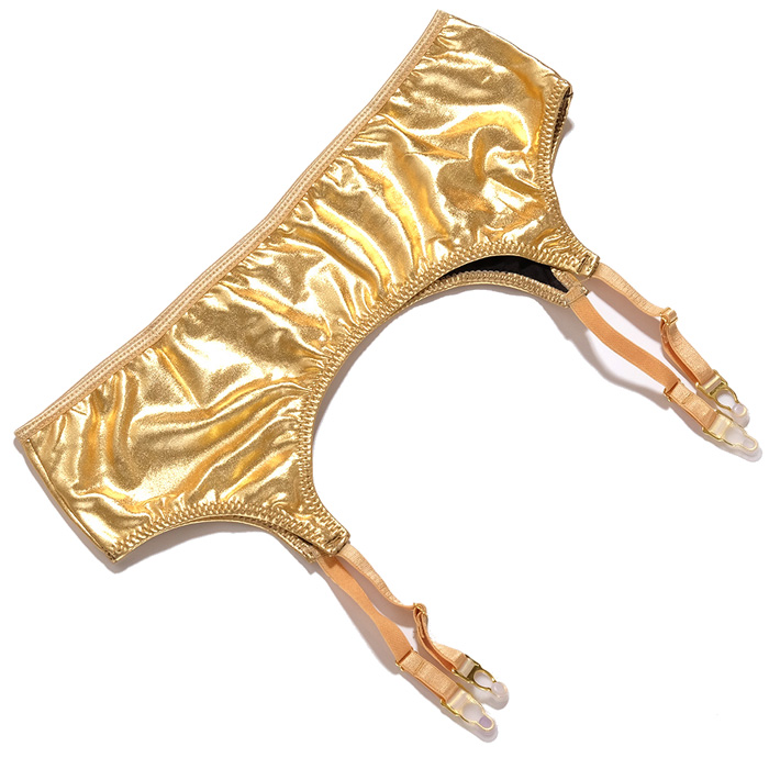 アメリカ ロサンゼルスのストッキングブランドメーカー【MUSICLEGS】のユニークでバラエティ豊かなセクシーアイテムです。ウェットルック素材でメタリックカラーのガーターベルトです。色味は華やかですが、飽きのこないシンプルなデザインになっていますので、様々な衣装やストッキングなどにも合わせやすいです。※ショーツ・ストッキング等はつきません。カラー:メタリックゴールドサイズ:フリーサイズ(W:約58-73、H:約86-101)素材:95% POLYAMIDE 5% SPANDEX