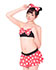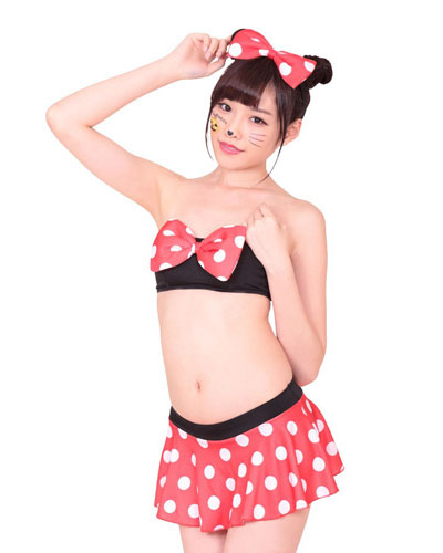 水玉リボンと水玉スカートがとってもキュート♪ 大人気キャラクターコスチュームをビキニとして着れちゃう!ドットリボンビーチビキニが登場♪カチューシャとブラのフロントリボン、そしてスカートは定番の赤×白ドットカラーでキュートに演出♪スカートは少しミニ丈ですが、パンツもセットになっているので安心です◎水着として着用も可能なため、通常のビキニとしても使えるおすすめコスチュームになっています。