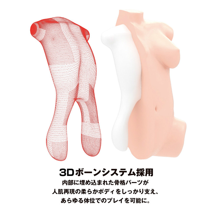 理想的なぽっちゃりボディを再現! ぽっちゃりとして柔らかなましゅまろボディが誕生しました!3Dグラフィック技術を用いて製作された本作は、リアルでありながら理想的なぽっちゃりボディを忠実に再現することに成功しました。豊かな肉付きと少し垂れたおっぱいに、触り心地最高のぽっちゃりお腹が気持ちよく、包み込まれるような感覚になります。キツキツの挿入口を堪能できる膣は、激狭のスパイラルヒダ構造となっており、イボが亀頭を激しく刺激。高刺激のイボゾーンからなる挿入口のアナルは、ジョリジョリのタテ筋構造で継続的に刺激し、最深部のイボでさらに責める仕様となっています。どんな体位でも対応できるように、身体が崩れない骨格素材を使用しており、激しい動きにも耐えられるよう作られています。約7kgと存在感のある重さとなっており、しっかりとした抱き心地を感じられます。理想のぽっちゃりボディを是非ご堪能ください!