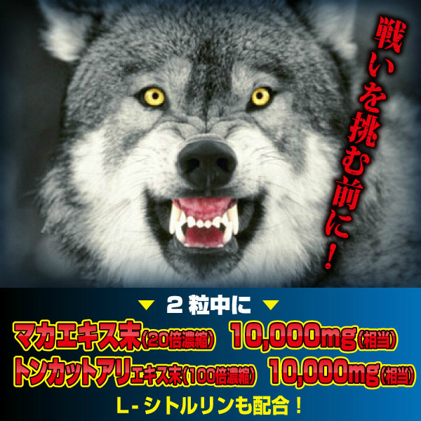 マカ、トンカットアリを主成分とした栄養補助食品「蘇闘狼カプセル 3回分(そとうろう)」。L-シトルリンもたっぷりと配合しました。マカエキス10000mg相当、トンカットアリエキス10000mg相当を配合した、男性のためのアイテムです。※1日2粒を目安にお召し上がり下さい。パッケージサイズ(約):10.8×6.5×3.0cm内容量:3袋(1袋×2粒入り)注:体調や精神状態、個人差などで使用感が変わる場合が御座います。ご使用に関してはご自身の責任でお願いします。