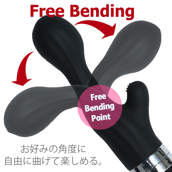 フレキシブルに曲がるので、自由な挿入角度が可能!本体と子機の両方にローターを搭載しているので、強力なダブル振動!