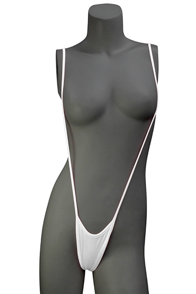 水濡れOK♪伸縮性があり、体にしっかりフィット♪水着などで使用されるウェット生地を使用したホワイトのブラ&ショルダーTバックショーツ☆濡れても安心なのでプールやお風呂などでもご使用いただけます。上下左右に伸縮して身体にしっかりフィットし、ブラもTバックもぴったりとフィットしてくれます。前からみるとショルダーTバックのデザインが際立ち、女性らしいボディラインを演出してくれます。Mサイズパッケージサイズ:16.0×13.0cm
