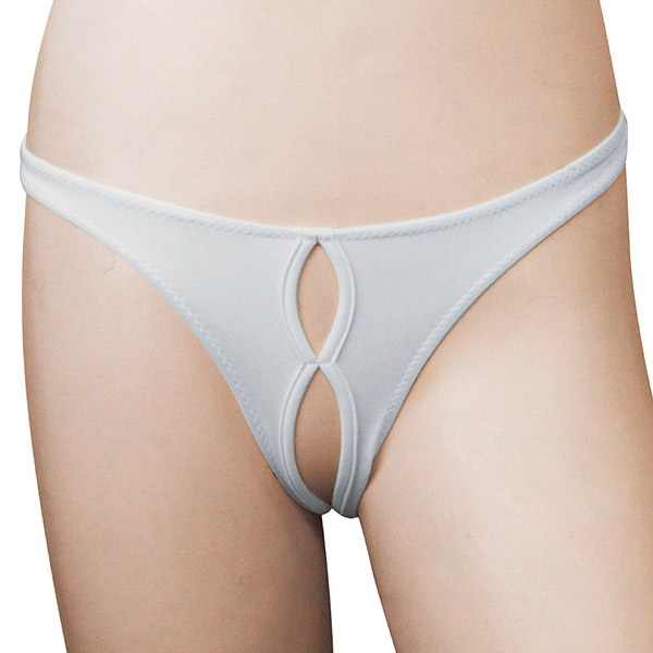 伸縮性抜群!クロッチがオープンになったショーツフロント部分がオープン仕様になっているホワイトカラーのセクシーなショーツ!2wayストレッチなので横方向だけではなく、縦にも伸縮し着用したままでもプレイ可能となっています。後ろもオープン仕様となっていて、お尻のワレメが丸見えでセクシーさをより一層引き立てます。裸よりもセクシーに見えるショーツで、一味違った夜をお過ごしください。サイズ:Mサイズパッケージサイズ:16.0×13.0cm