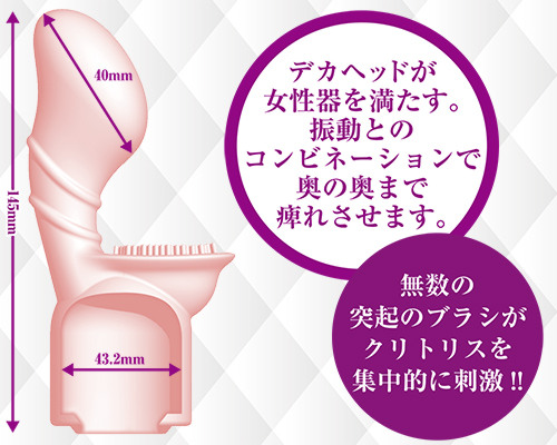 幅広いデンマヘッドに対応するデンマ用アタッチメント 中型クラス(ヘッド直径4.5cm未満)の電マンにぴったりとフィットする電マン用アタッチメント「フィットキャップ」。電マンは、女性をイカせるために設計されたと言っても過言ではない究極のアイテム。その究極アイテムをさらに進化させるためのアタッチメントなので、気持ちよくないはずがありません! こちらの「アーム」は、デカヘッドが女性器を満たし、デンマの強力な振動とのコンビネーションで奥の奥まで痺れさせる。無数の突起ブラシも付いているので、クリ責めにも効果的。クリや入り口を焦らしたり、そのまま挿入して潮を吹かせたり、使い方はアナタ次第! ※電マンは付属しません。