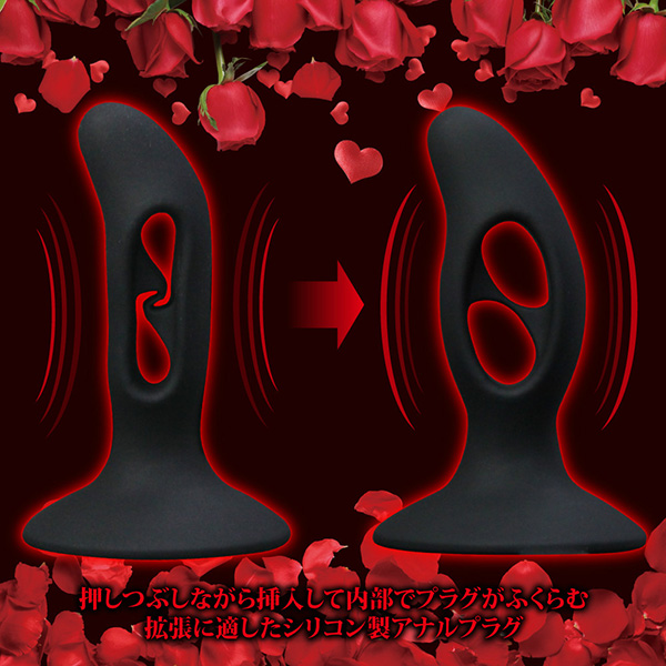 中で膨らんで拡張するアナルプラグ中央に穴が開いた斬新な形状のアナル拡張グッズ!挿入の際には、その空洞部分を利用して押しつぶしながらアナルに入っていき、中に入ると内部で膨らむ拡張に適した仕様となっています。底面の広がった部分は吸盤となっていて、床や壁に固定して使うことができ、またストッパーの役割も担います。「アナルプラグD」は、先端が突き出て少し曲がった形状となっており、前立腺によりアプローチするフォルムです。本体サイズ:9.6×Φ3.4cmパッケージサイズ:16.0×10.5×7.0cm