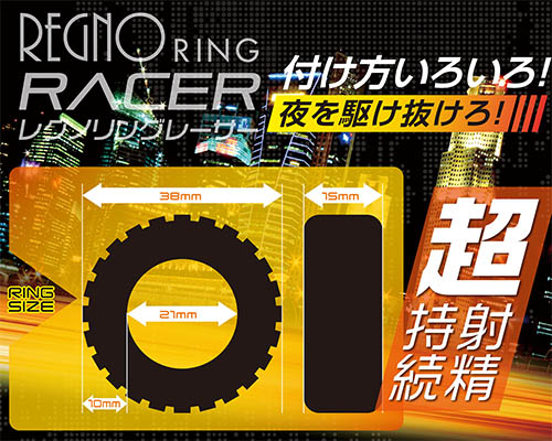 2連リングで締め付ける!使い方は貴方次第!二つのリングがセットになった男性用リング「レグノリング レーサー」。その名の通り、レーサー(タイヤ)のようなデザインで、アナタの持続力、勃起力、射精力をトリプルサポート。付け方は、タマとサオに付けたり、タマの奥に付けたり、サオだけに付けたりと、あらゆるバリエーションでアナタを締め付けてくれます。お好みのスタイルでお使いください。本体サイズ:フリーサイズパッケージサイズ:16.5×10.0×2.5cm