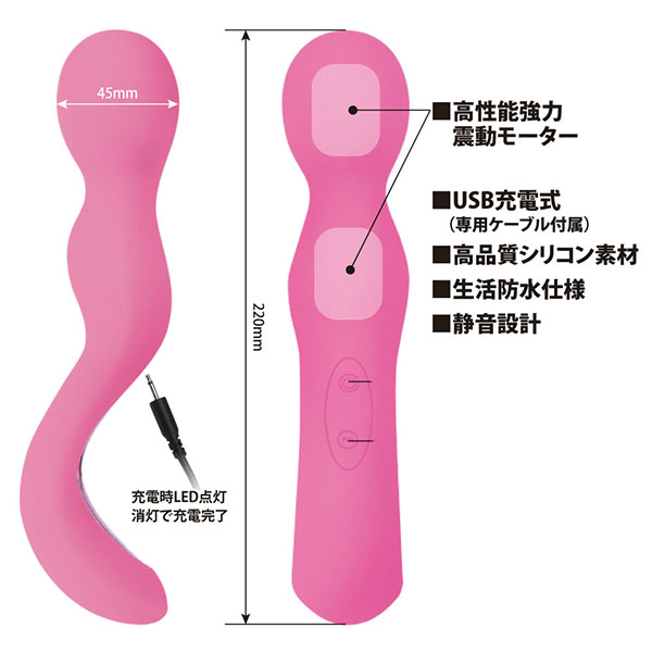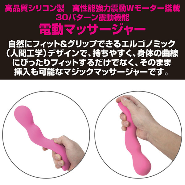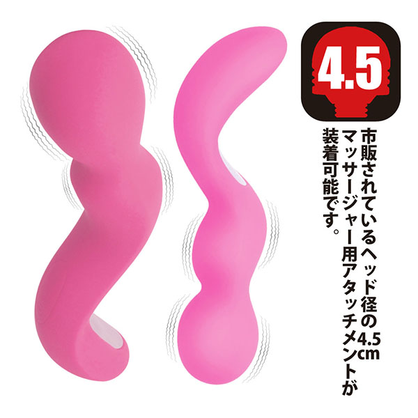 自然なフィット&グリップのマッサージャー エゴノミクス(人間工学)に基づいたデザインで持ちやすく身体の曲線にフィットしやすい仕様となっています!ポイントにあてるだけでなく、挿入も可能なマッサージャーで、ヘッドの先端と中腹の2ヶ所にモーターを搭載しており、相乗効果により強力な震動刺激を伝えます。さらに振動パターンは30種類と豊富なので、飽きがきません。高品質のシリコン素材を使っているので、肌触りも良く安全・安心です。生活防水&静音設計となっておりますので、場所を選ばずにお使い頂けます。市販されているヘッド径の4.5cmのマッサージャー用アタッチメントの装着が可能なので、いろいろな刺激をお楽しみ頂ける多様性の高いアイテムとなっています!