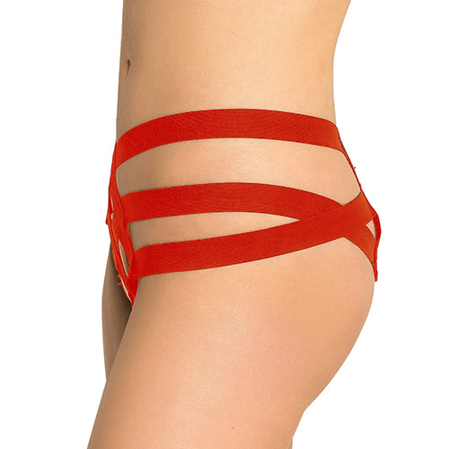 幾何学デザインで魅了するセクシーショーツ太めの6本のゴムを幾何学的に配置した頭脳派アートパンティ。使いようによっては、SMプレイにも最適な一枚になりそうです。通気性もよく、ゴム製だから伸縮性も抜群!ちょっと変わったパンティをお求めの方にオススメしたいアイテムです。サイズ:Mサイズ W58-70cm H87-95cm