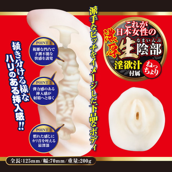 日本女性の生膣体験!日本女性のアソコを忠実に再現した濃厚生陰部が楽しめるオナホール「東京美優伝」。小ぶりながらも、その濃密で繊細な構造は挿れた瞬間から生感触を味わっていただけます。こちらの「みずき」は、超肉感のガチンコプレイが楽しめる!かき分けるようなハリのある挿入感が楽しめるハードタイプで、派手なビッチをイメージした下品なボディが慣れた感じで射精へと導いてくれます。ねっちょりと絡みつく淫欲汁(ローション)付属。本物志向のリアル名器をご堪能ください。本体サイズ:12.5×Φ7.0cm重量:200gパッケージサイズ:17.0×7.0×6.0cm