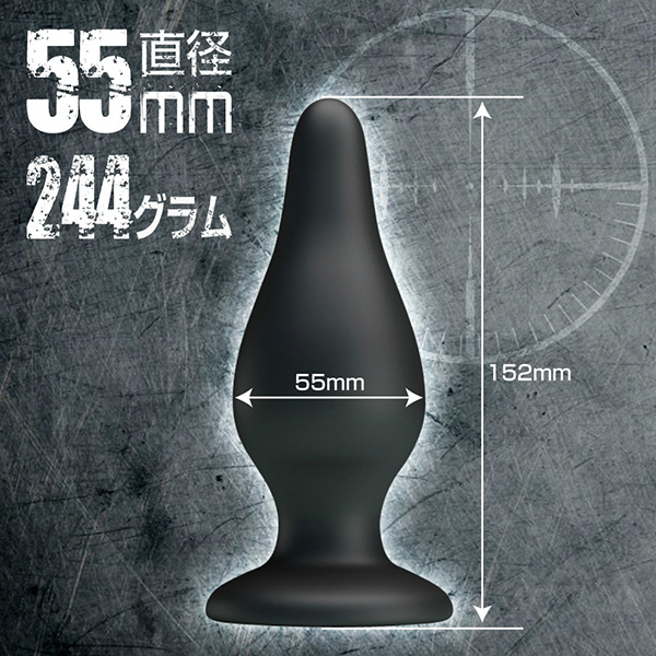 スムーズな挿入から最高潮まで到達するアナルプラグ先端から中盤部分までの拡張スピードが半端ないアナルプラグ「55ブラックシェル」!流線型なので挿入自体はスムーズですが、そこからどんどん大きくなり、最大直径5.5cmの拡張を実現します。太い形状ですが高品質シリコン素材を使っているので、お肌に優しく安心です。底面部分は強力な吸盤仕様となっているため、床や壁に引っ付けて自ら腰を動かしながら、いろいろな体位を楽しむことができます!本体サイズ:15.2×Φ5.5cmパッケージサイズ:21.0×10.0×8.0cm重量:340g