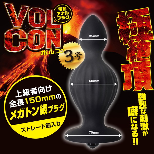 アナル拡張に最適な電動アナルプラグ 超強力マイクロローターを搭載したアナルプラグ「ボルコン」。本体底部に刺さったマイクロローターがプラグ全体に強力な振動を与えてくれます。こちらの「3号」は、上級者向けの全長15.0cmのメガトン級プラグ。本体表面にはストレート筋が入っていて、シンプルなプラグとはまた違った快感を楽しむことができます。二段式のプラグで、先端直径は3.5cm、最大径は6.0cmとなっており、挿入長を調節することで日々の拡張にも役立ちます。また、本体底部にはストッパーも付いていて、安心してお使いいただけます。アナルプラグの未来を切り開く、昇天必至の快感プラグです。