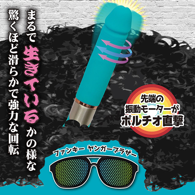 男性器のようなフォルムで生きているかのような動きを実現! 生き物のように滑らかな動きをするスウィング機能が搭載されたバイブレーター!リアルなペニスの形状をしたボディには、亀頭部分に強力なモーターを内蔵し、ポルチオまで届くような振動を与えます。スウィング機能には、通常の規則正しい回転はもちろん、振動切替ボタンを長押しする事で、押している間は生き物のように激しく暴れるファンキーバースト機能が発生し、予測不能でファンキーなスゥイングを体感できます。10パターンのスゥイングとバイブレーションの、多彩なアクションで飽きることなく長くお楽しみ頂けます。ボディはメディカルグレードシリコン製となっているので、肌触り抜群です!是非、ブラザーとファンキーな夜をお過ごしください!