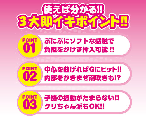 スムーズな挿入を促す初心者用バイブ ぷにぷにソフトな感触で負担を掛けずに挿入できる快感バイブ「オルガラッシュGソフト」。先端は、Gスポットに的確に当たるような形状となっていて、さらにスイング機能も搭載。スイングしながらGスポットをとらえるから、中ではぐちゃぐちゃにかき回してくれる様子が浮かんできます。子機にも内部ローターを搭載しており、クリトリスをピンポイントで刺激できるように無数の触手が張り巡らされています。スイング、バイブレーションはどちらも上下スライド式の無段階調節なので、初心者の方も安心してお使いいただけます。日本製による安心の使用感もプラスされた、シンプルだけどしっかり仕事をしてくれる一本です。