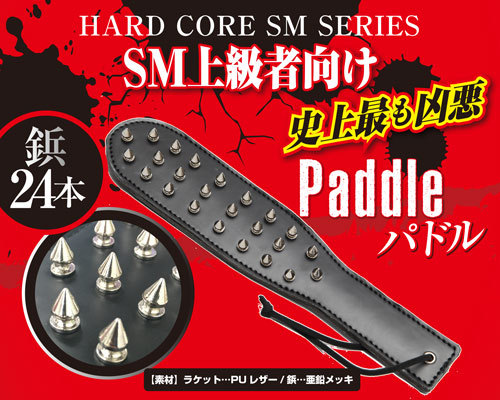 おふざけ厳禁!?本格SMスパンキング 初心者の使用厳禁!?ハードなSMプレイを目的として考案されたスパンキングアイテム。レザー調のパドルで高級感があり、お仕置きするには最適なアイテムです。ただし、このパドルには表面に24本の鋲が付いていて、凶悪なパドルとなっているので遊び半分で使用するのは禁物です。パートナーとの理解を深めたうえで使用していただくSM上級者用アイテムです。さらなる利点としては、鋲が付いているのはパドルの片面だけなので、反対側はただのレザーパドルですので、メリハリのある使い分けができるのが特徴です。究極のお仕置きプレイを遂行するために誕生した上級者向けSMグッズです。 ※ご使用に関しては自己責任でお願いします。