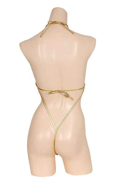 ゴージャスかつ大胆なセクシーテディ!大胆かつセクシーなデザインに仕上げた大人のテディ。ホルターネックタイプでブラの部分が特徴的なデザインとなっています。バックスタイルは、ダブルラインのGストリング仕様となっていて、フロント部分も極小のマイクロデザインでセクシーさを強調しました。斬新なデザインで魅了する大人のランジェリーです。サイズ:B78-88cm W58-70cm H87-95cmカラー:ゴールド