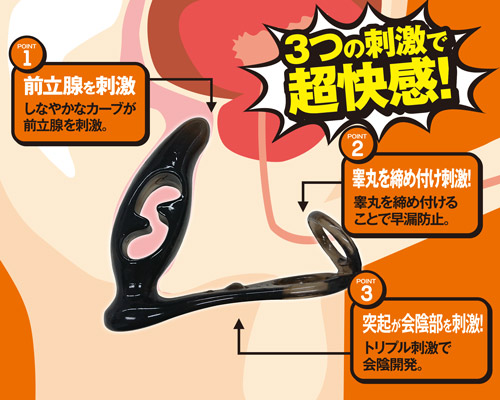 挿れる時にツブして中で広がる! 睾丸を締め付けて会陰部を刺激し、アナルプラグで快感を与えてくれる男性用グッズ「スムースアナル」。アナルへ挿入するプラグは、内部が空洞になっていて、手でつまむことでスリムなプラグに変形します。そうすることでアナルに負荷をかけることなく、簡単に装着することができるので初心者の方にオススメです。プラグからつながる先端部分には、睾丸を締め付けるリングを採用しました。また、プラグとリングの間には会陰部を刺激する突起があり、睾丸・会陰部・アナルのトリプル刺激で快感を呼び覚ましてくれます。使用後は丸洗いできるので、衛生的にも問題なく安心してお使いいただけます。男性機能の向上やアナル開発など、あらゆる快感と悩みを解消してくれるアイテムです。