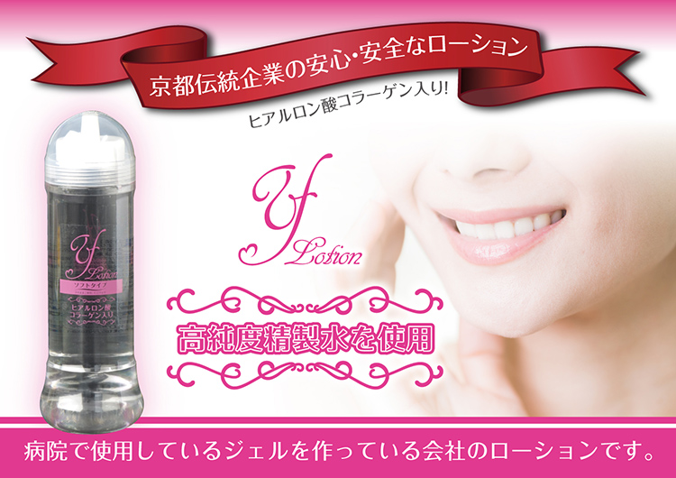 優しい使い心地のローションヒアルロン酸・コラーゲンを配合したお肌に優しいソフトタイプのローション「Yローション」。先端先細ノズルで無駄な使用を抑えて、使いたい時に使いたい分だけご使用いただけます。お肌に優しい成分を配合しているので、全身のマッサージやオナホールへの使用など、幅広い用途で使えるマルチローションです。ソフト粘度で伸びも良く、洗い流しも良好。安心の日本製でたっぷり300mlのお得ローションです。内容量:300ml