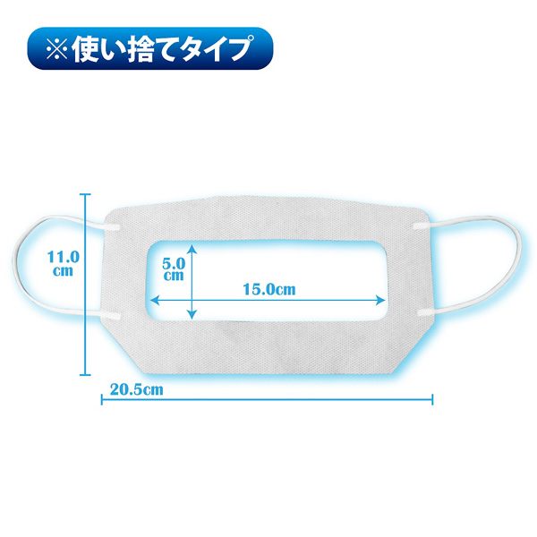 本体サイズ:フリーサイズ、マスク部分20.5×11.0cm パッケージサイズ:30.0×14.5×3.3cm 内容量:100枚入り