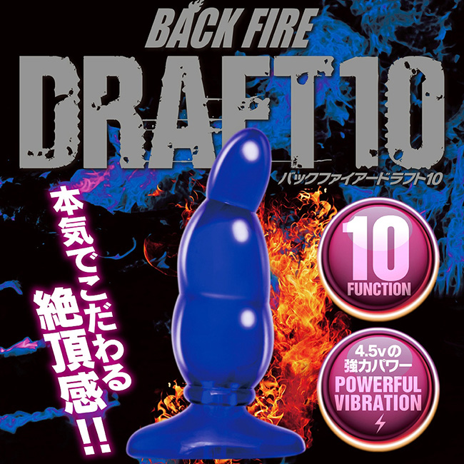 10段階の多彩なファンクションが魅力 もはやアナルバイブの定番になったといっても過言ではない【バックファイアーシリーズ】!そんなバックファイアーシリーズの「バックファイアー ドラフト」を改良して完成したのが「バックファイアードラフト10」となっています。前回のバックファイアー ドラフトでは振動パターンは4種類でしたが、今回は多彩な10種類もの振動を楽しむことができます。デンマレベルの強力振動ローターを搭載した本体の素材は柔らかく滑らかな肌触りが特徴となっており、スムーズな挿入感を実現。本体底部には台座が付いていて、安定した挿入をサポートしてくれます。形状は、3段階で太くなる形状となっていて、最大径は3.7cmとアナル上級者でも満足いただけるサイズとなっています。神の振動「神動」を是非体感ください!