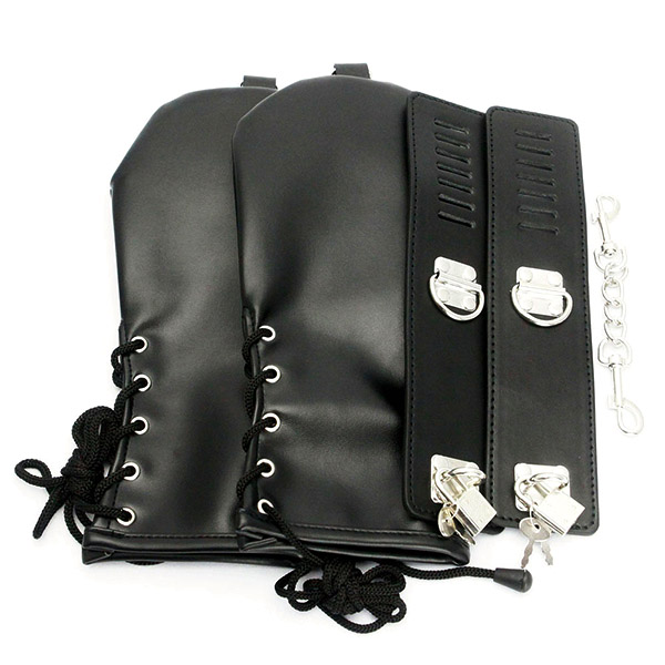 ボクシンググローブと手枷が融合した斬新なSMグッズ まるでボクシンググローブのような拘束手枷です!従来の手首に付けて拘束する手枷ではなく、グローブを着用して腕を拘束するので手全体を拘束でき、拘束痕が付きにくいので安心安全です。手錠はベルトによってサイズ調節ができるのでしっかりと拘束でき、南京錠付きでさらに拘束感が高まります。見た目にも服従感が強まりますので、普通の手枷に物足りなさを感じる方にオススメとなっております!