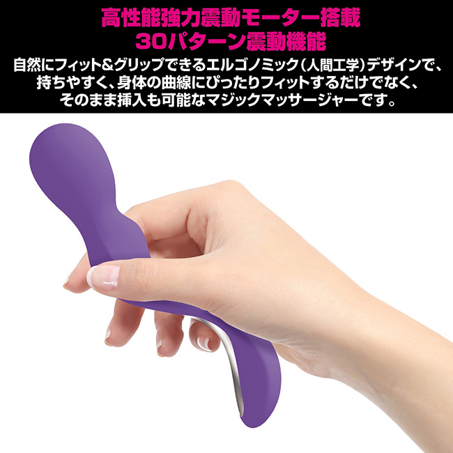 独特の形状で挿入まで可能なマッサージャー おしゃれで他にない機能を搭載した「プリティラブシリーズ」!今作はエルゴノミクス(人間工学)に基づいた設計で作られており、持ちやすく身体への曲線にぴったりとフィットします。快感スポットに当てて刺激するだけでなく、そのまま挿入することもできるので、マッサージャーの強力な刺激を中で感じることが可能です。振動パターンは30種類の多彩な振動でオーガズムへと導きます。高品質シリコンを採用しているので、弾力がありお肌にも優しく安心安全。さらに生活防水機能が付いていて多機能で高機能な満足度の高いグッズとなっています。挿入できるマッサージャーを是非お試しください!