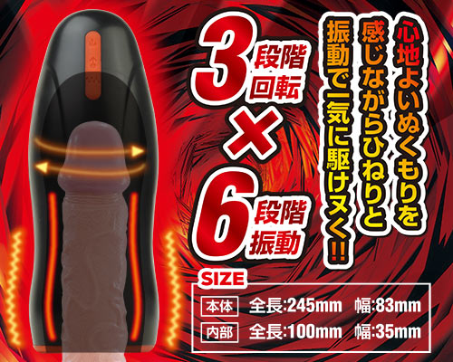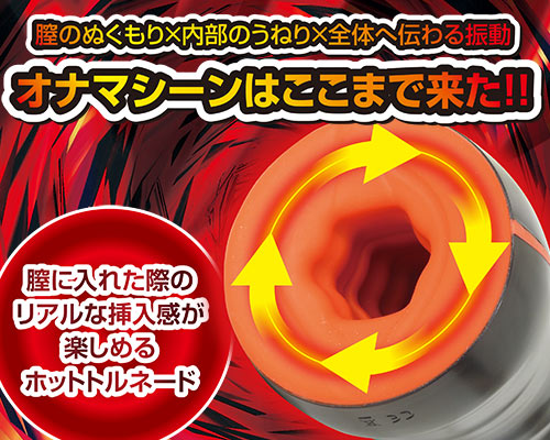心地よい温もりを感じながら振動を感じる! 膣のぬくもり×内部のうねり×全体へ伝わる振動。女性器で感じることのできる感覚をすべて兼ね備えたホットトルネードが、電動オナホールに嵐を巻き起こす。オナマシーンはここまで来た!電源を入れて挿入すれば、ボタンを押すだけで快楽へ導く刺激を楽しめる。心地よいぬくもりを感じながら、ひねりと振動で一気に駆けヌケろ。 【ホットモード】 ボタンを押せば、熱が約40度まで上昇。膣内のぬくもりを楽しめる。 【回転モード】 3パターンの回転で、膣の内部のうねりを楽しめる。 【振動モード】 6パターンの振動で、女性が絶頂に達する際の震えを楽しめる。